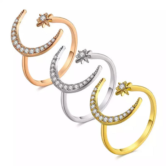 Bague élastique Cristal de roche rouge et cristal de roche blanc/noir