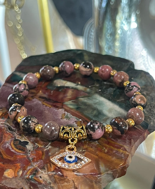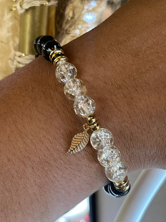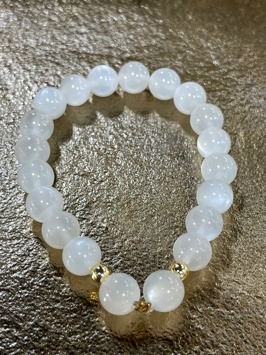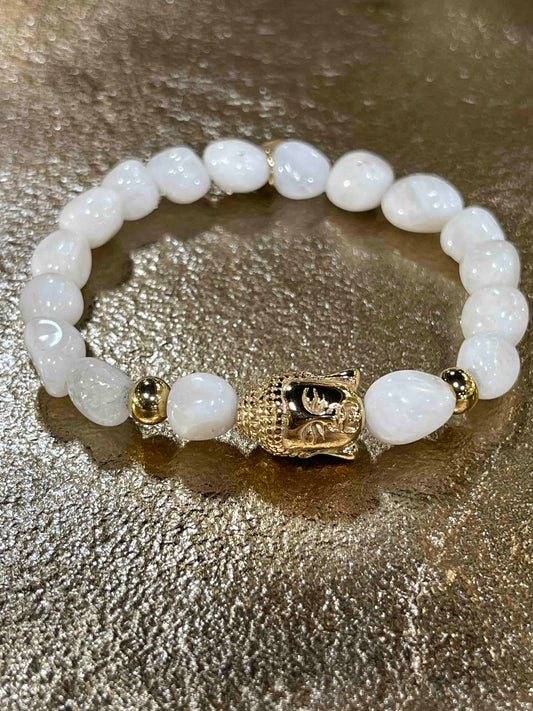 Bracelet pierre de lune & cornaline avec fleur de lotus