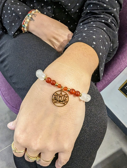 Bracelet pierre de lune & cornaline avec fleur de lotus
