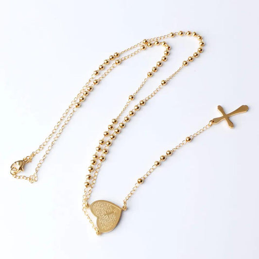 Collier chapelet avec cœur en acier inoxydable